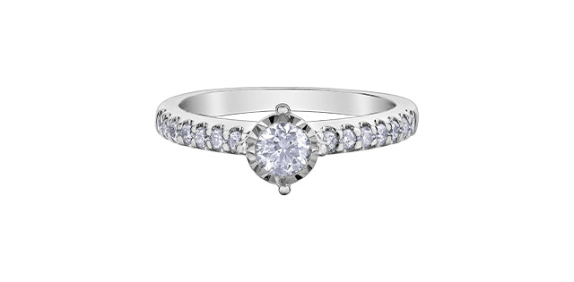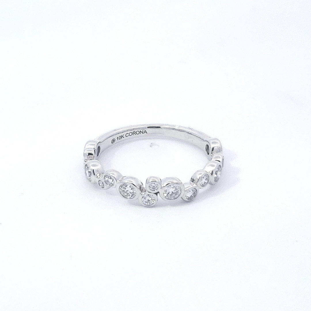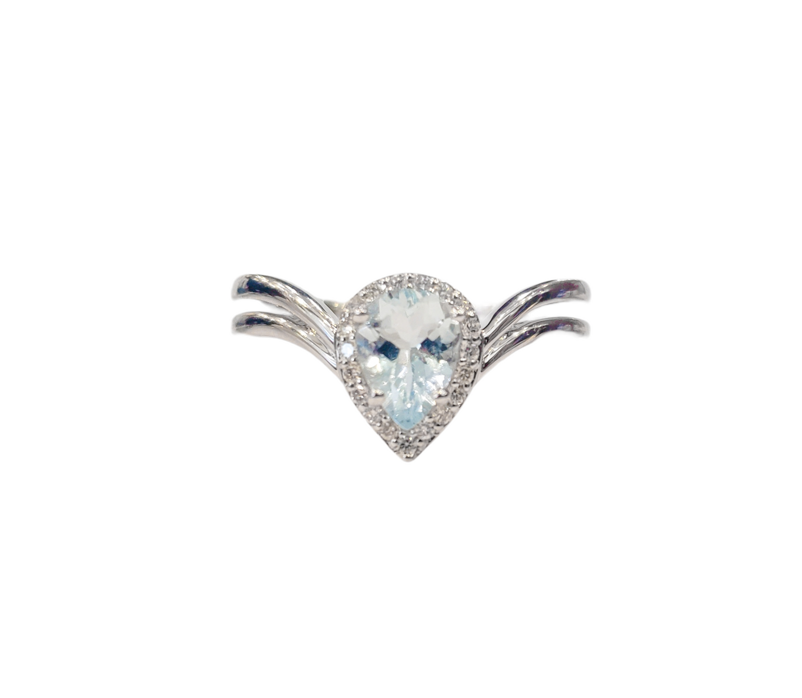 Anillo de oro blanco de 10 quilates con esmeralda de talla pera de 0,65 quilates y diamante de 0,14 quilates - Tamaño 6,5