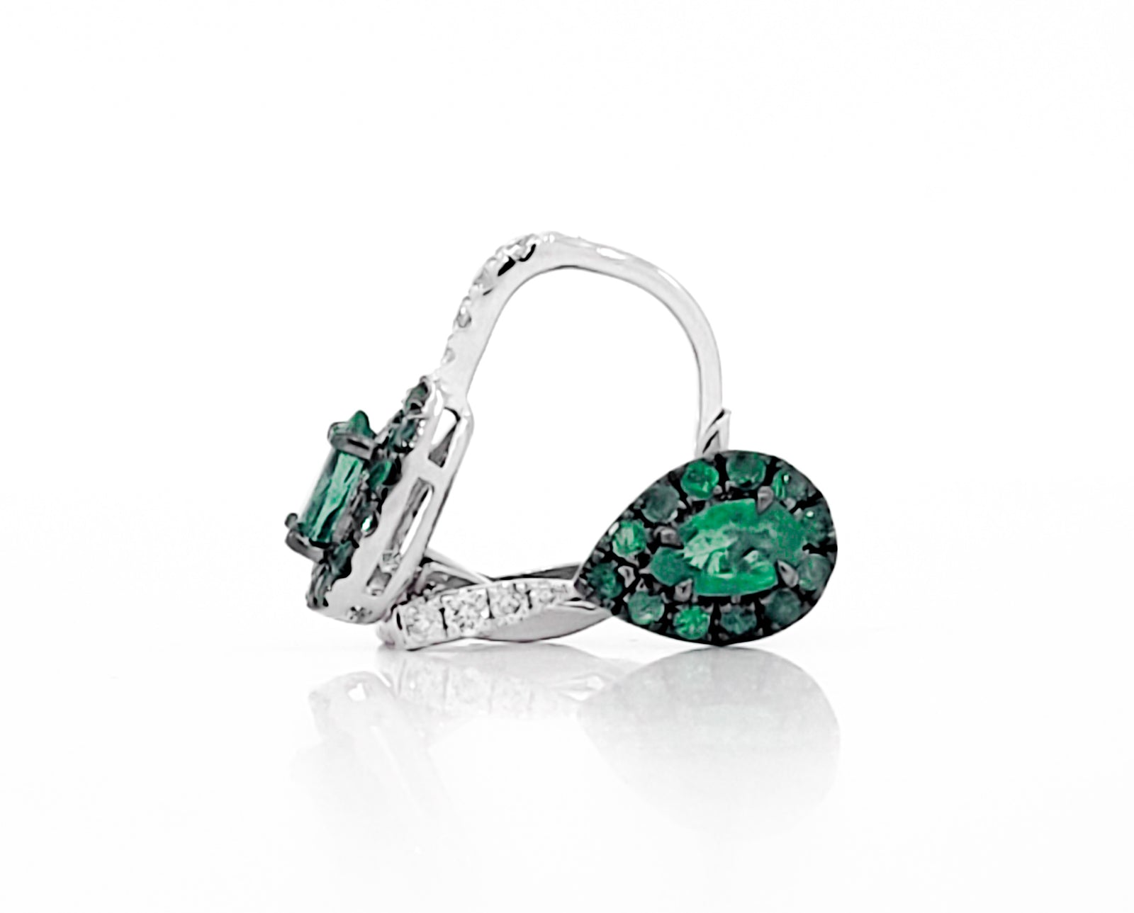 Aretes tipo palanca con halo de diamantes y esmeralda de 0,60 quilates en oro blanco de 10 quilates y halo de diamantes de 0,06 quilates
