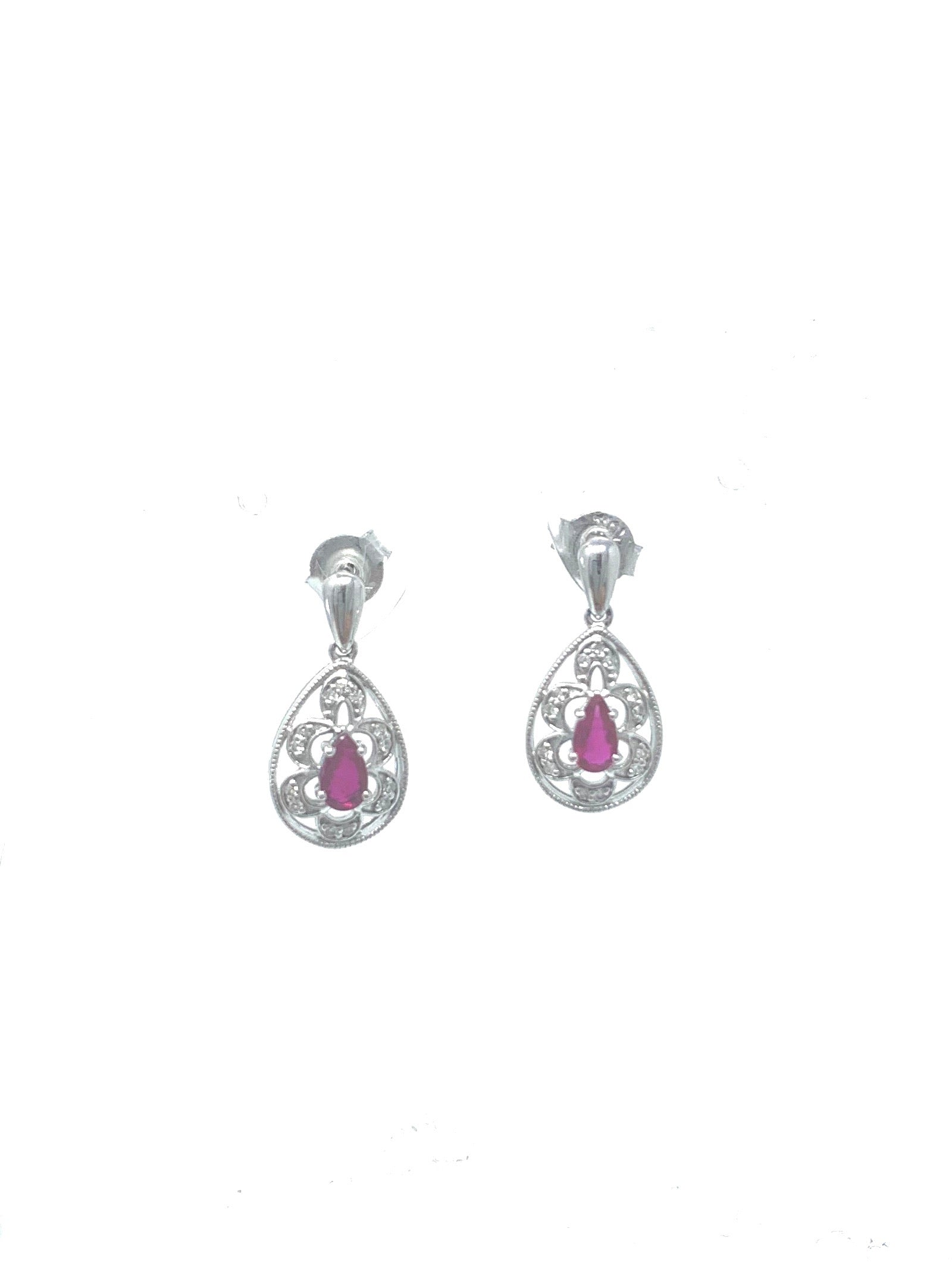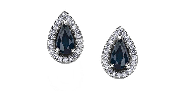 Pendientes con halo en forma de pera de oro blanco de 10 quilates con zafiro genuino de 0,60 quilates y diamantes de 0,11 quilates