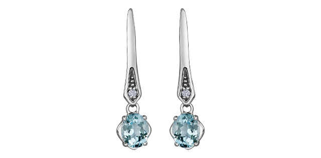 Pendientes de oro blanco de 10 quilates con topacio azul cielo genuino de 0,60 quilates y diamantes de 0,03 quilates