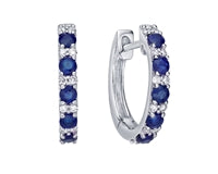 Pendientes tipo argolla/huggie de oro blanco de 10 quilates con zafiro auténtico de 0,70 quilates y diamantes de 0,15 quilates