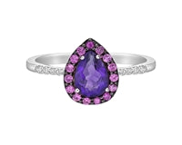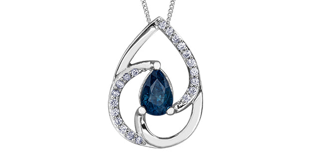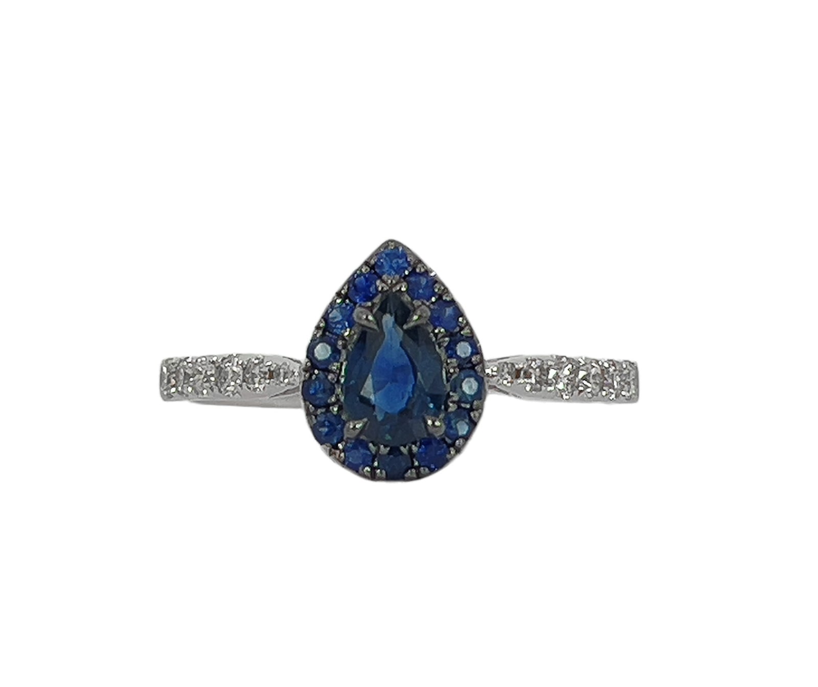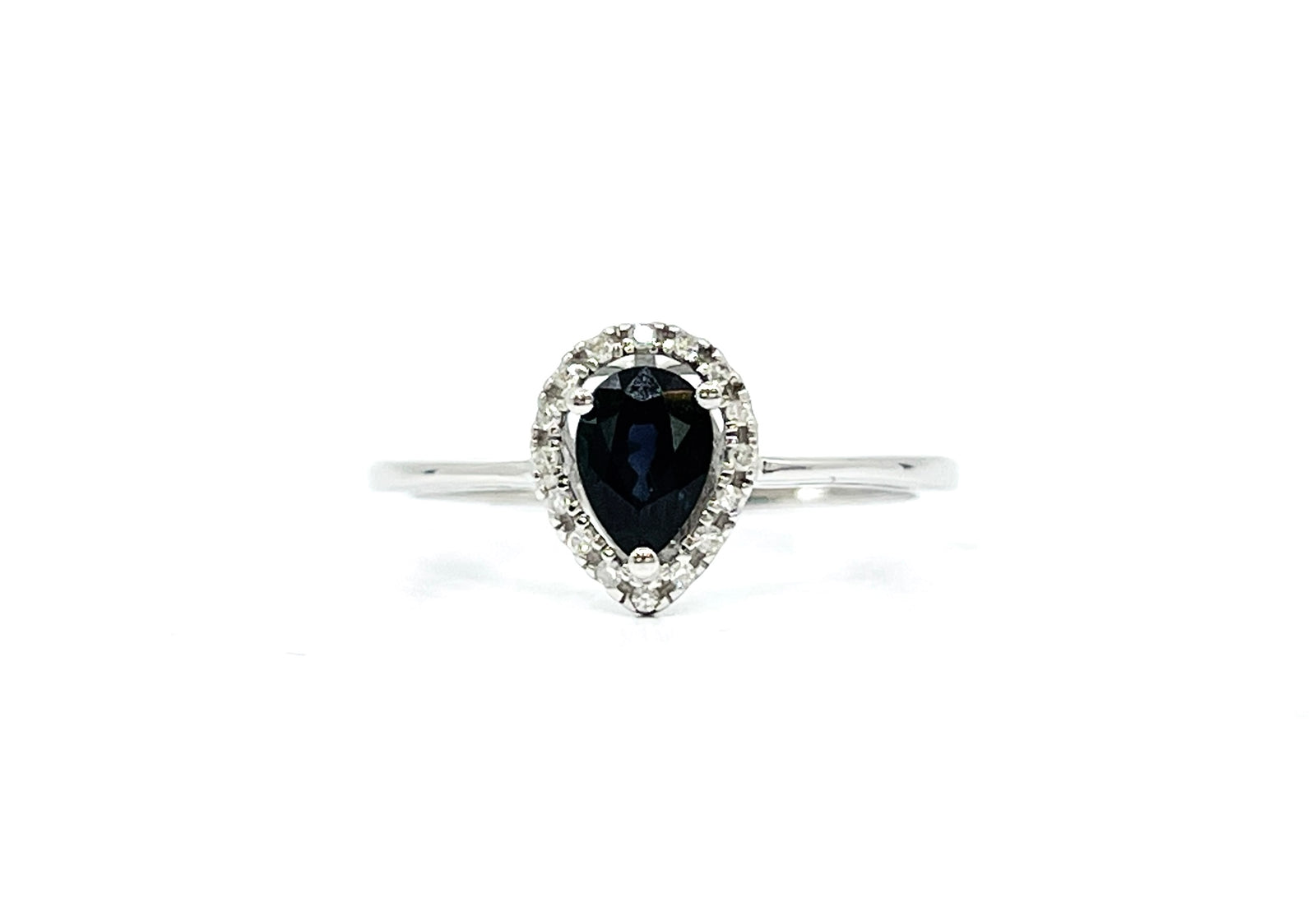 Anillo de oro blanco de 10 quilates con zafiro de 0,70 quilates y diamante de talla pera de 0,14 quilates - Talla 7