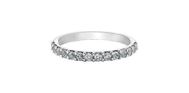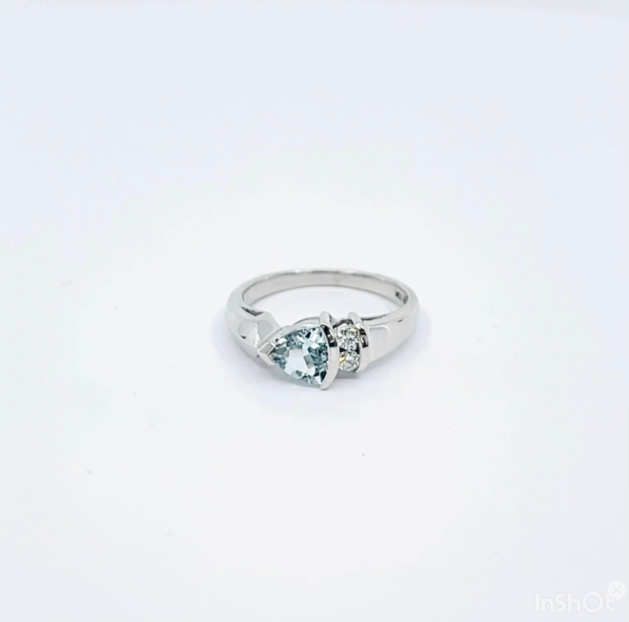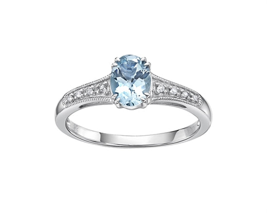 Anillo de oro blanco de 10 quilates con aguamarina de talla ovalada de 0,65 quilates y diamante de 0,04 quilates, talla 7