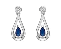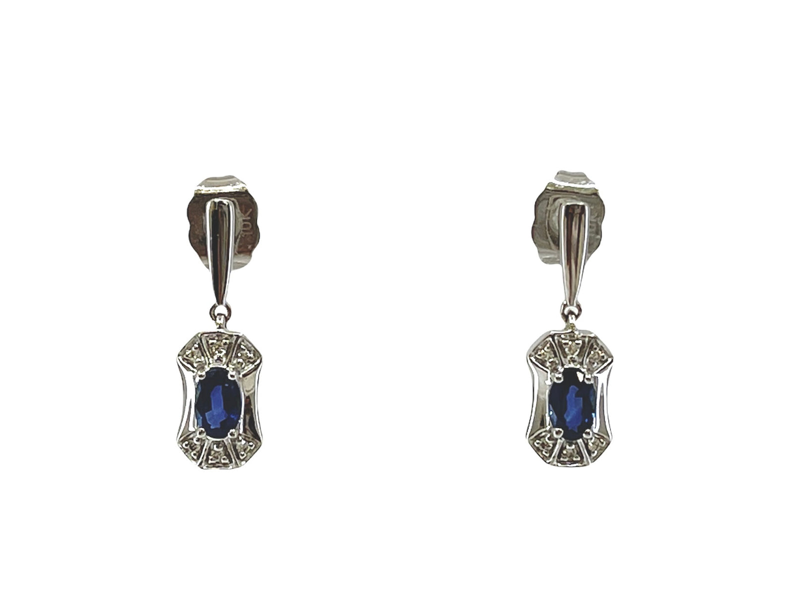 Pendientes colgantes de oro blanco de 10 quilates con zafiro auténtico de 0,55 quilates y diamantes de 0,04 quilates