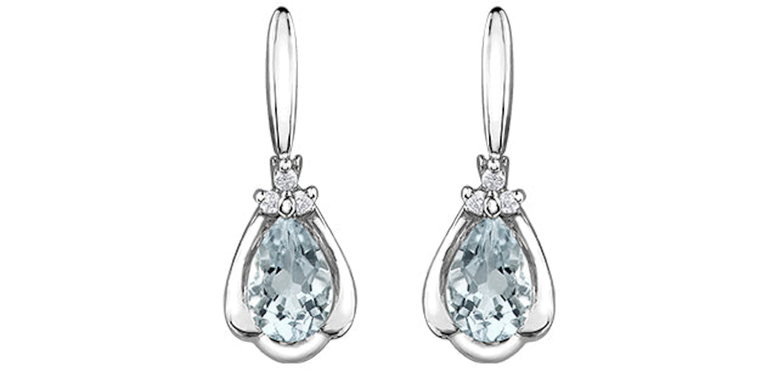 Oro blanco de 10 quilates, 0,70 quilates, aguamarina genuina con talla de pera y aretes colgantes con diamantes de 0,03 quilates