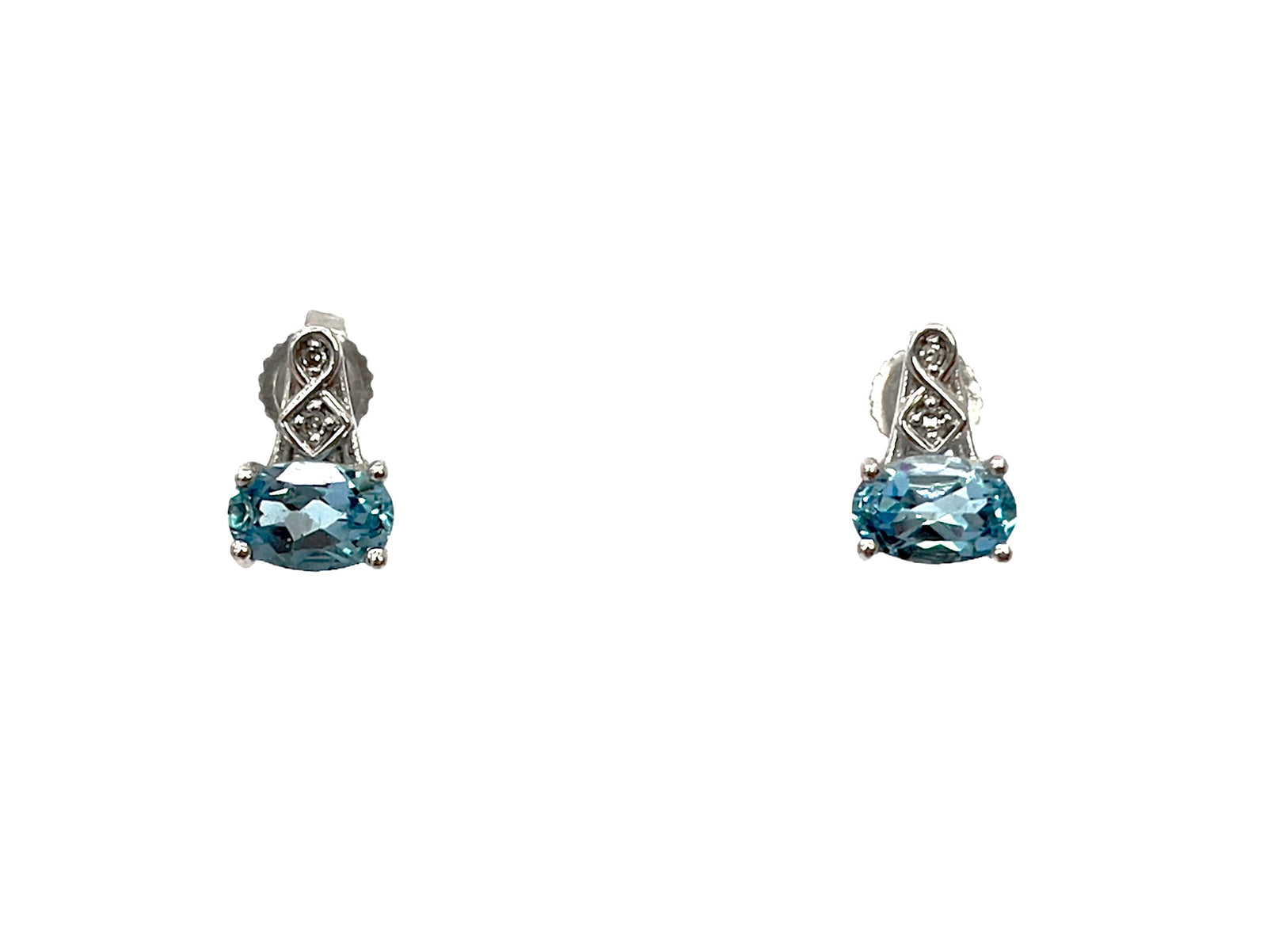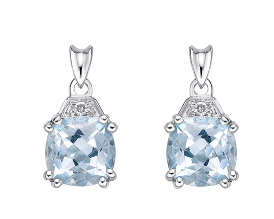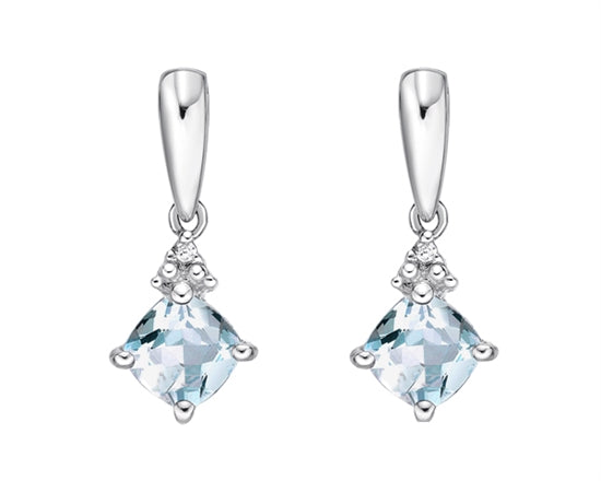 Pendientes colgantes de oro blanco de 10 quilates con aguamarina de 1,10 quilates y diamantes de 0,012 quilates