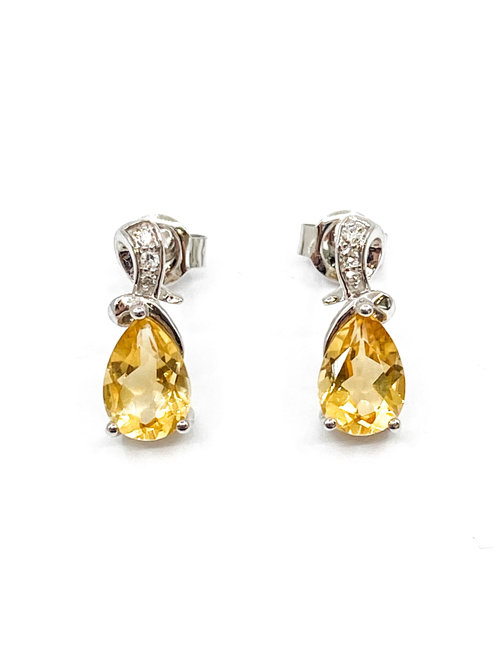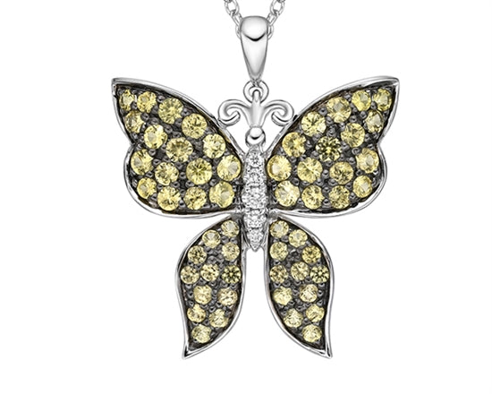 Colgante de mariposa de diamantes de 0,037 quilates y zafiro amarillo de talla redonda de 1,25 a 2,10 mm en oro blanco de 10 quilates - 18 pulgadas