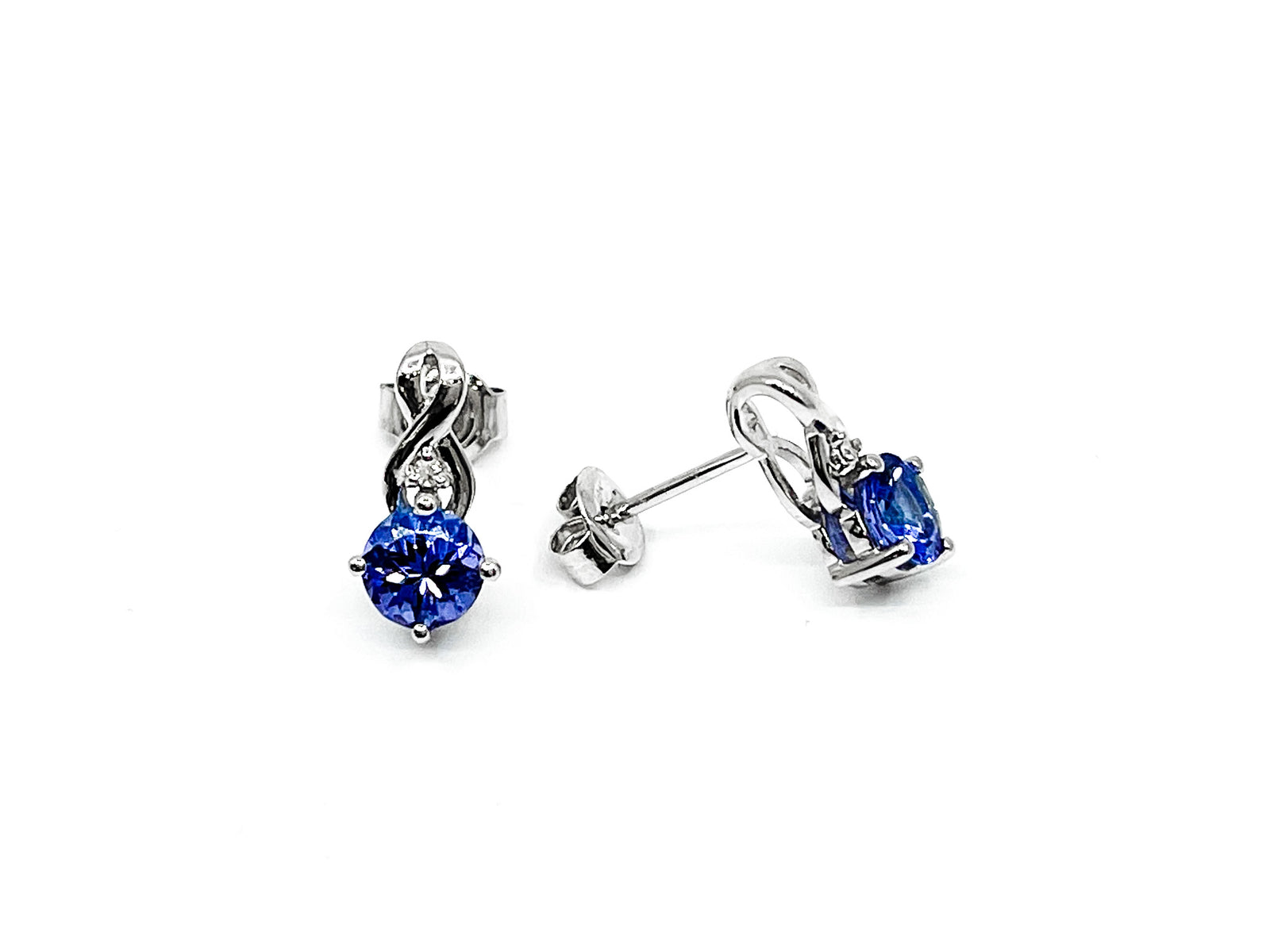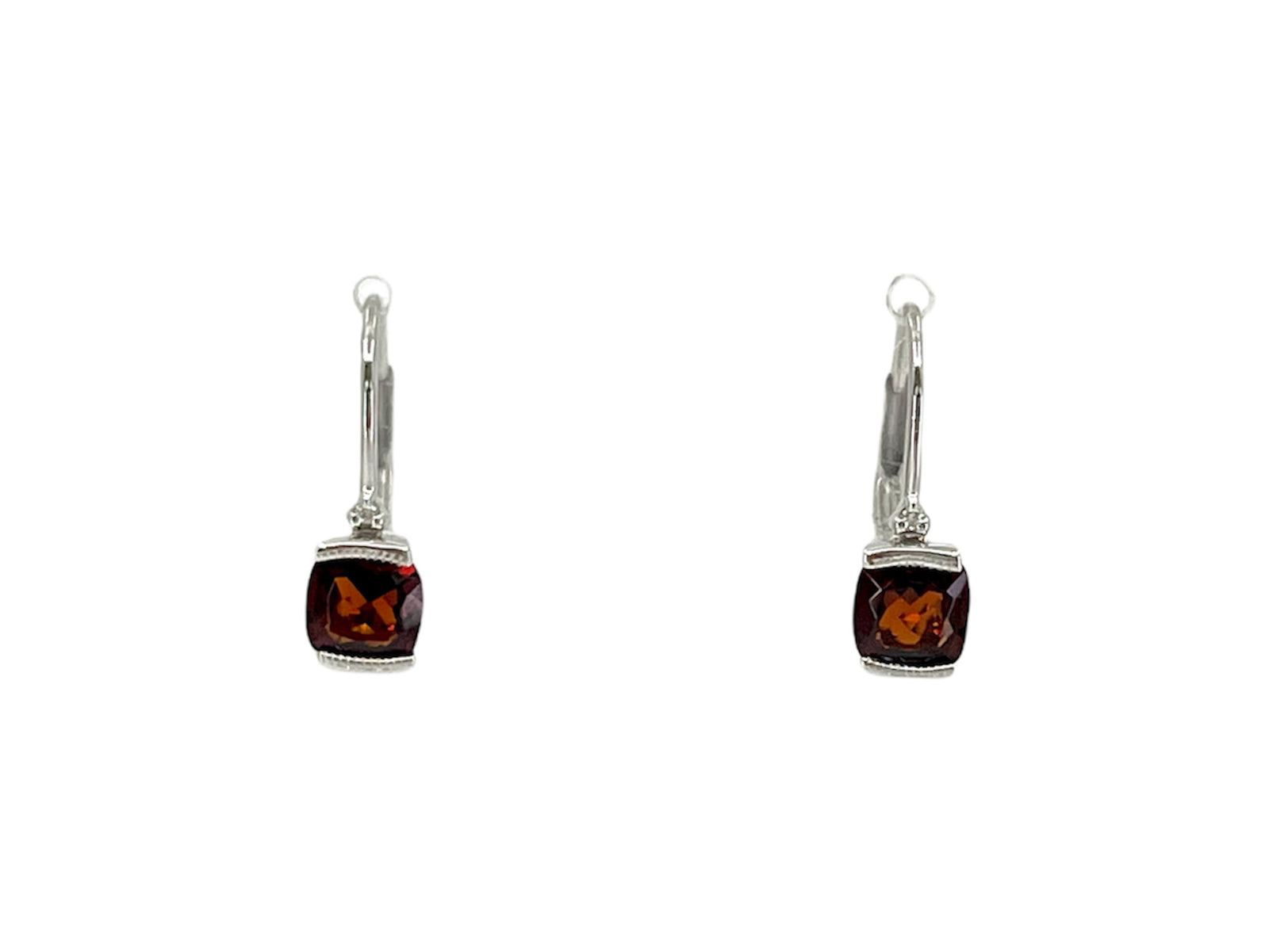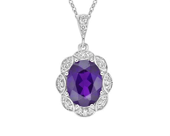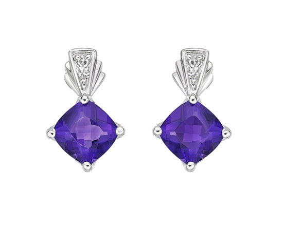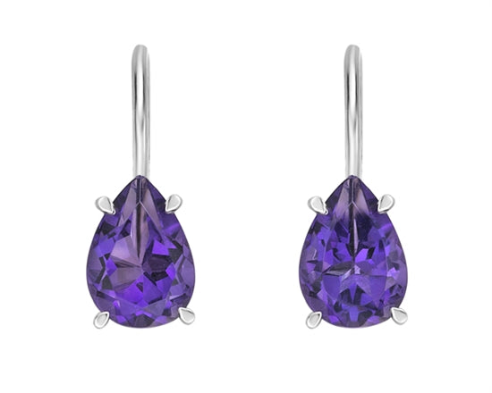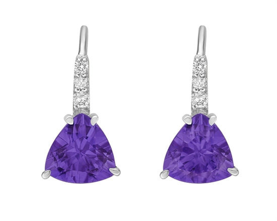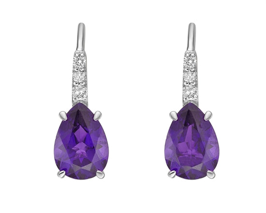 Aretes colgantes de oro blanco de 10 quilates con amatista de 1,35 quilates y diamantes de 0,065 quilates con cierres de palanca