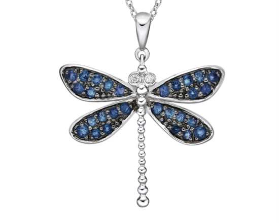Colgante de libélula de diamantes de 0,01 quilates y zafiro de talla redonda de 1,30 a 1,60 mm en oro blanco de 10 quilates - 18 pulgadas