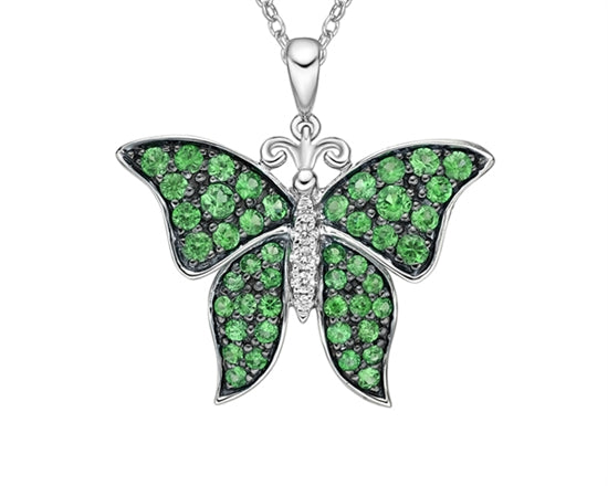 Colgante de mariposa de diamantes de 0,031 quilates y esmeralda de talla redonda de 1,25 a 2,10 mm en oro blanco de 10 quilates - 18 pulgadas