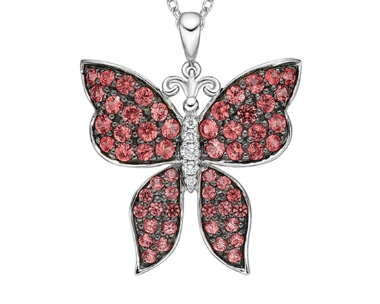 Colgante de mariposa de oro blanco de 10 quilates, rubí de talla redonda de 1,25 a 2,10 mm y diamante de 0,037 quilates, 18 pulgadas