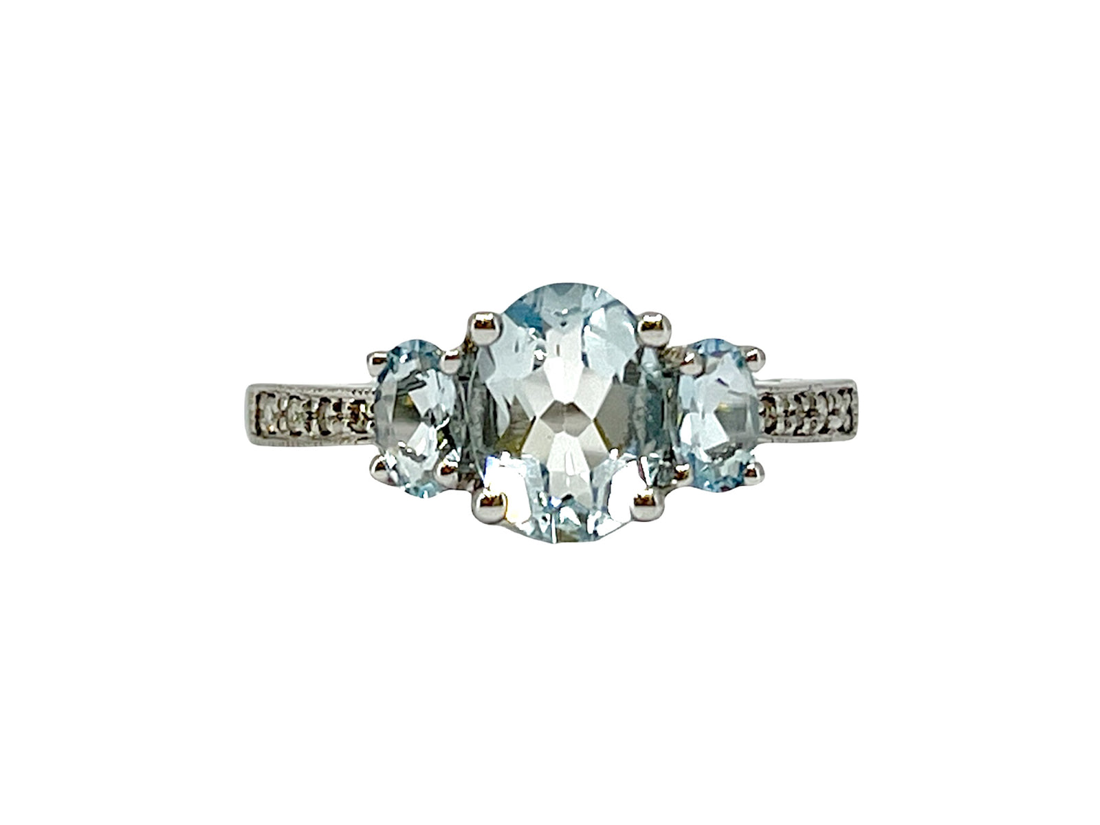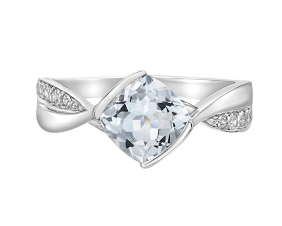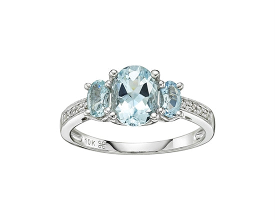 Anillo de oro blanco de 10 quilates con aguamarina de talla ovalada de 1,40 quilates y diamante de 0,04 quilates, talla 7