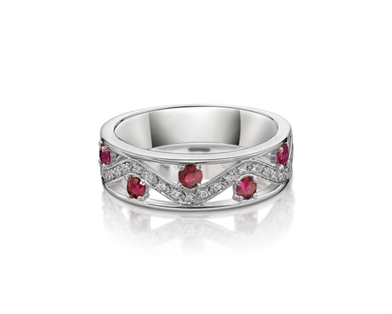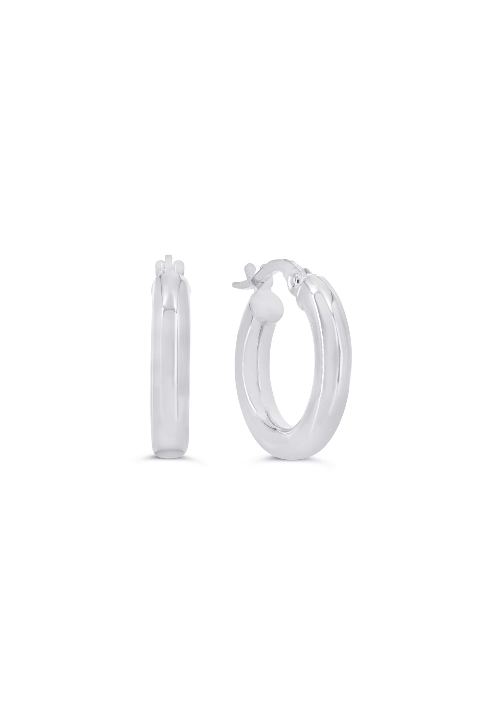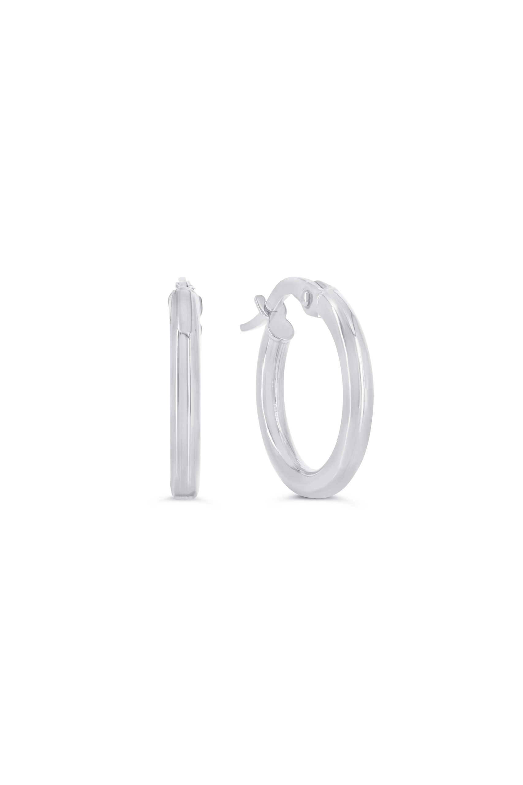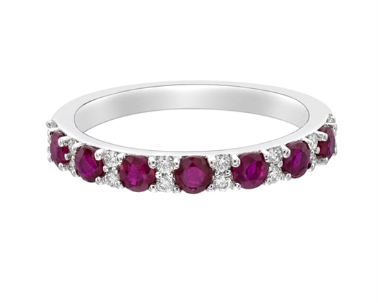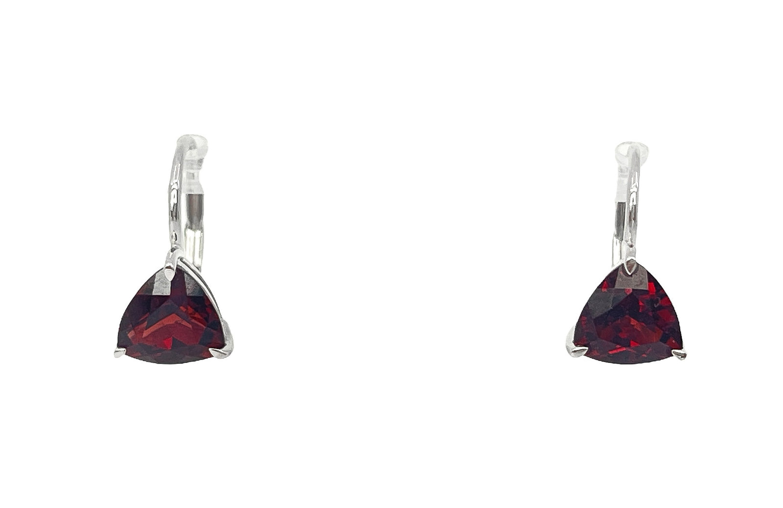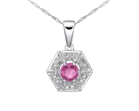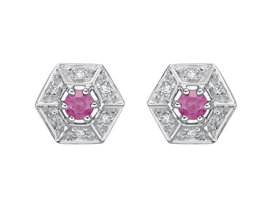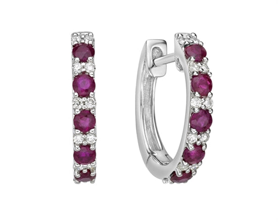 Aretes tipo argolla de oro blanco de 10 quilates, rubí de talla redonda de 2,20 mm y diamantes de 0,15 quilates con respaldo en engaste de puntas