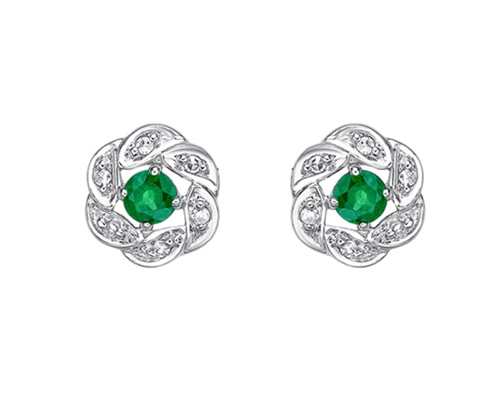 Aretes de oro blanco de 10 quilates con esmeralda de talla redonda de 2,80 mm y halo de diamantes de 0,05 quilates con respaldo de mariposa