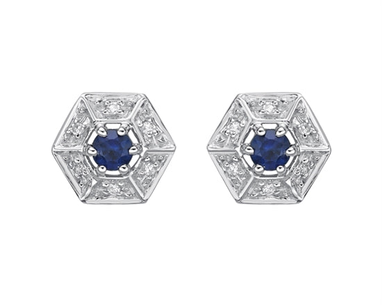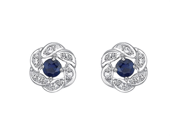 Aretes de oro blanco de 10 quilates con zafiro de talla redonda de 3,00 mm y halo de diamantes de 0,05 quilates con respaldo de mariposa