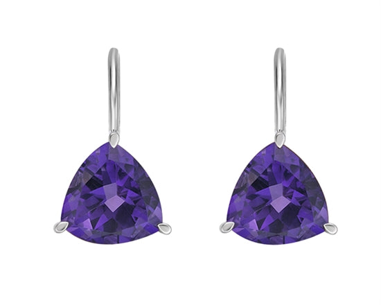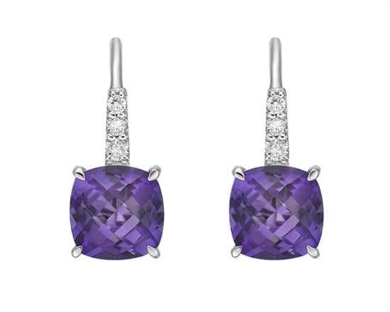 Aretes colgantes de oro blanco de 10 quilates con amatista de 2,35 quilates y diamantes de 0,065 quilates con cierres de palanca