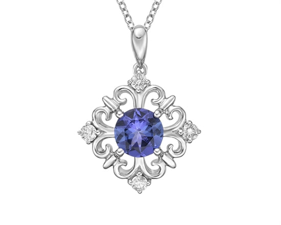 Collar de oro blanco de 10 quilates con alejandrita creada de talla redonda de 5 mm y diamantes de 0,09 quilates - 18 pulgadas  Collar de oro blanco de 10 quilates con alejandrita creada de talla redonda de 5 mm y diamantes de 0,09 quilates - 18 pulgadas