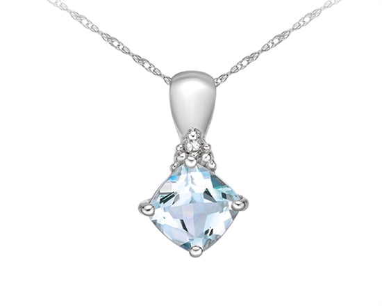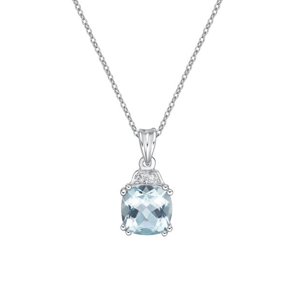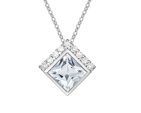 Colgante de oro blanco de 10 quilates, aguamarina de talla princesa de 6,0 mm y diamante de 0,14 quilates - 18"