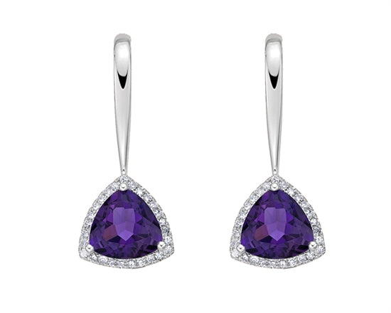 Pendientes colgantes de oro blanco de 10 quilates con tanzanita de talla ovalada de 5x3 mm y diamantes de 0,04 quilates con respaldo de mariposa