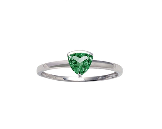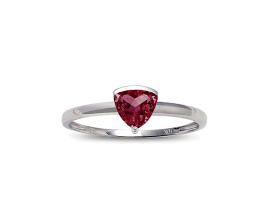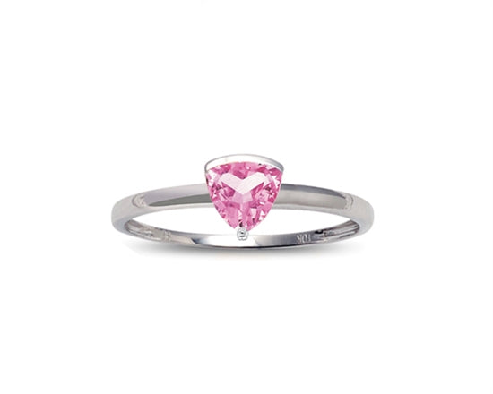 Anillo de diamantes con piedra natal de piedras preciosas rosas creadas con talla trillón de 5 mm en oro blanco de 10 quilates - Tamaño 7