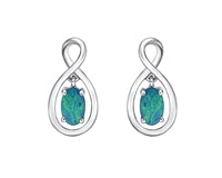 Collar de oro blanco de 10 quilates con doblete de ópalo australiano de 5 mm x 7 mm y diamantes de 0,01 quilates, 18 pulgadas