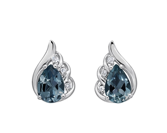 Anillo de oro blanco de 10 quilates, topacio azul Londres de talla cojín de 8 mm y diamante de 0,06 quilates - Talla 7  Anillo de oro blanco de 10 quilates, topacio azul Londres de talla cojín de 8 mm y diamante de 0,06 quilates - Talla 7