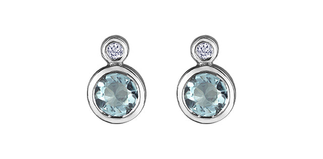 Pendientes de oro blanco de 10 quilates con aguamarina y diamantes de 0,01 quilates