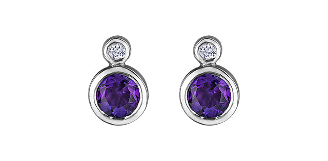 Pendientes de oro blanco de 10 quilates con amatista y diamantes de 0,032 quilates