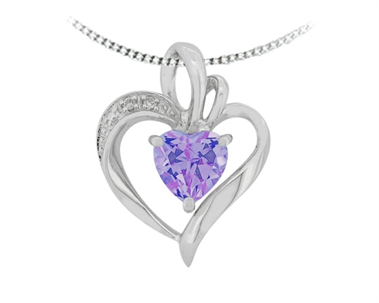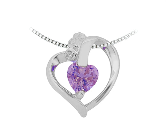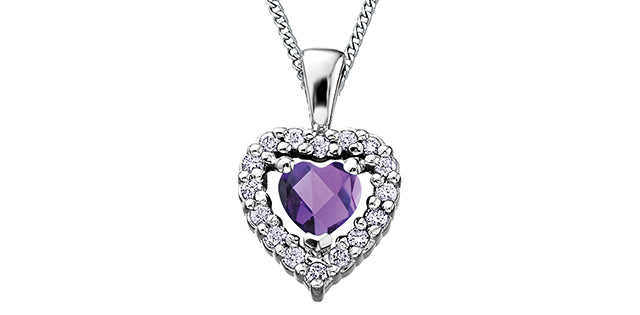 Colgante en forma de corazón con diamantes y amatista en oro blanco de 10 quilates, 18"