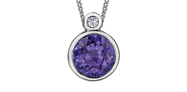 Colgante de oro blanco de 10 quilates con amatista y diamante canadiense - 18"