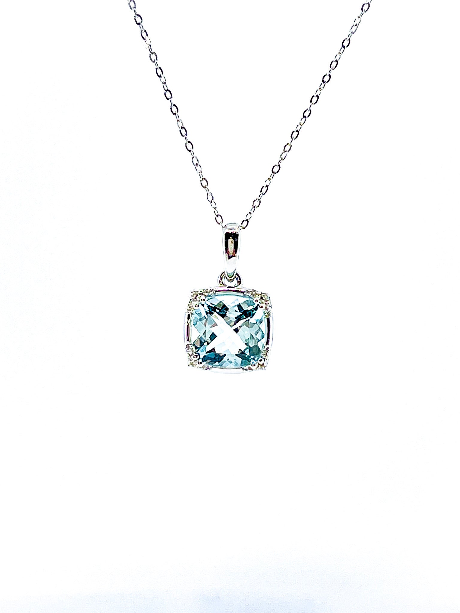 10K White Gold Aquamarine & diamond pendant with chain $712.00 $712.00