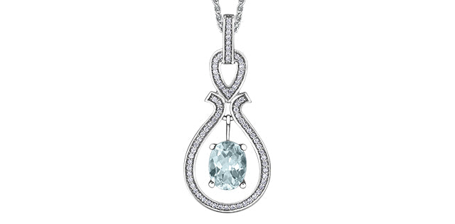 10K White Gold Blue Topaz & Diamond Pendant