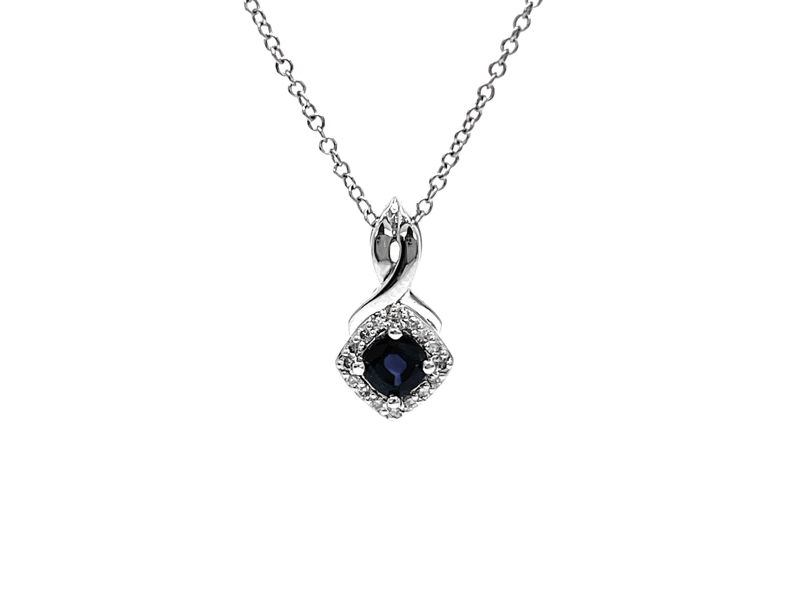 Colgante de diamantes y zafiro azul en oro blanco de 10 quilates