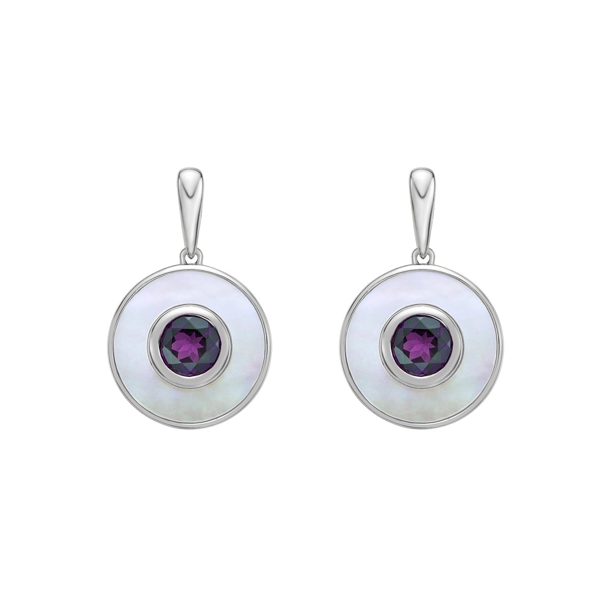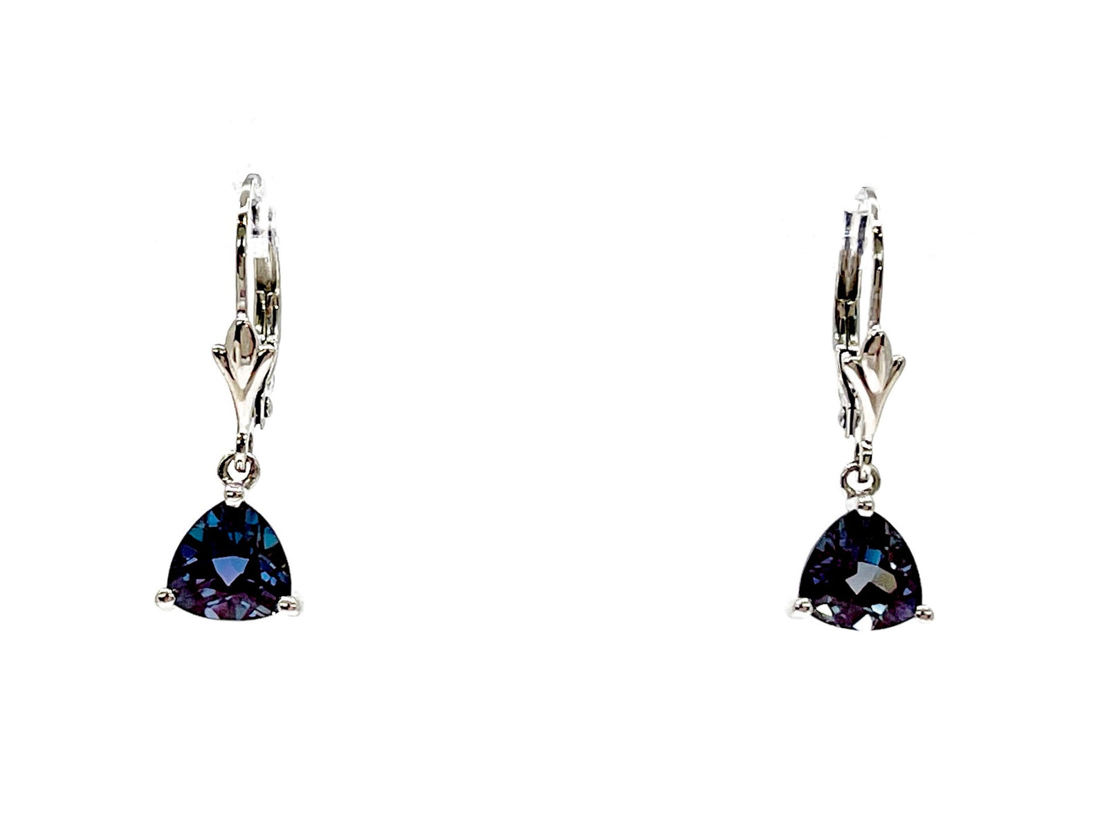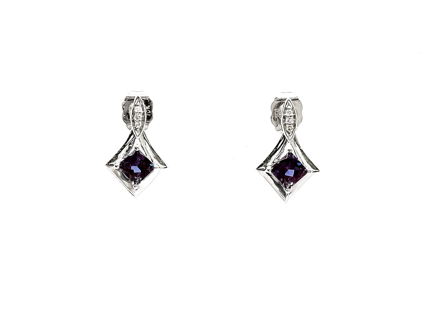 Pendientes de oro blanco de 10 quilates con alejandrita creada y diamantes de 0,026 quilates