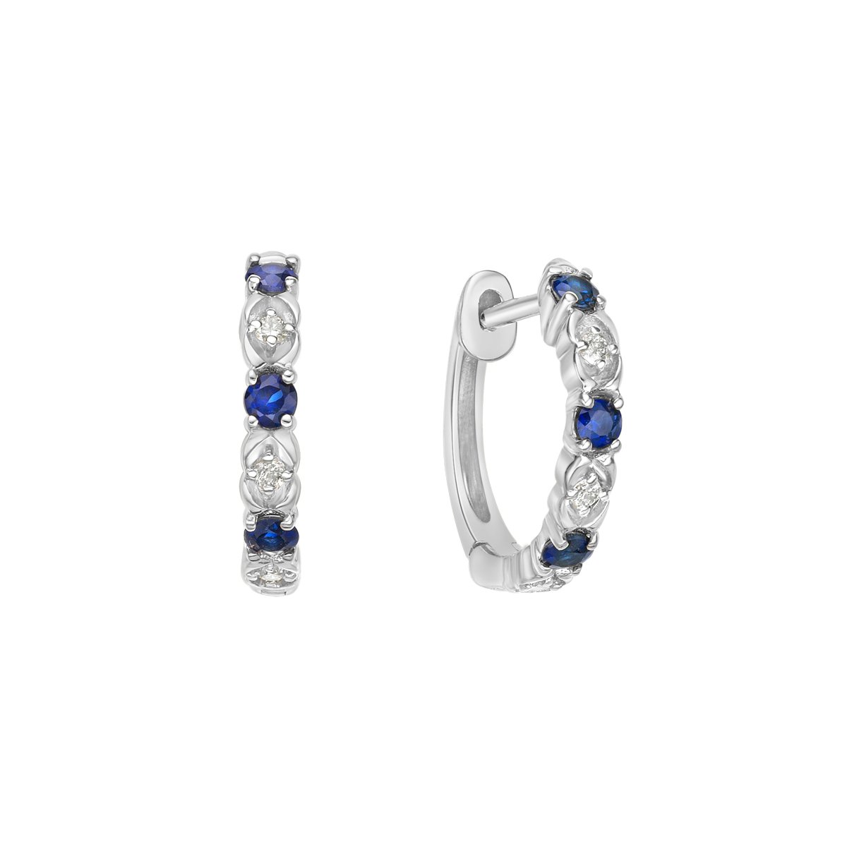 10K White Gold Classic Sapphire & Diamond Hoop Earrings 0.04 cttw $1,102.00 $1,102.00