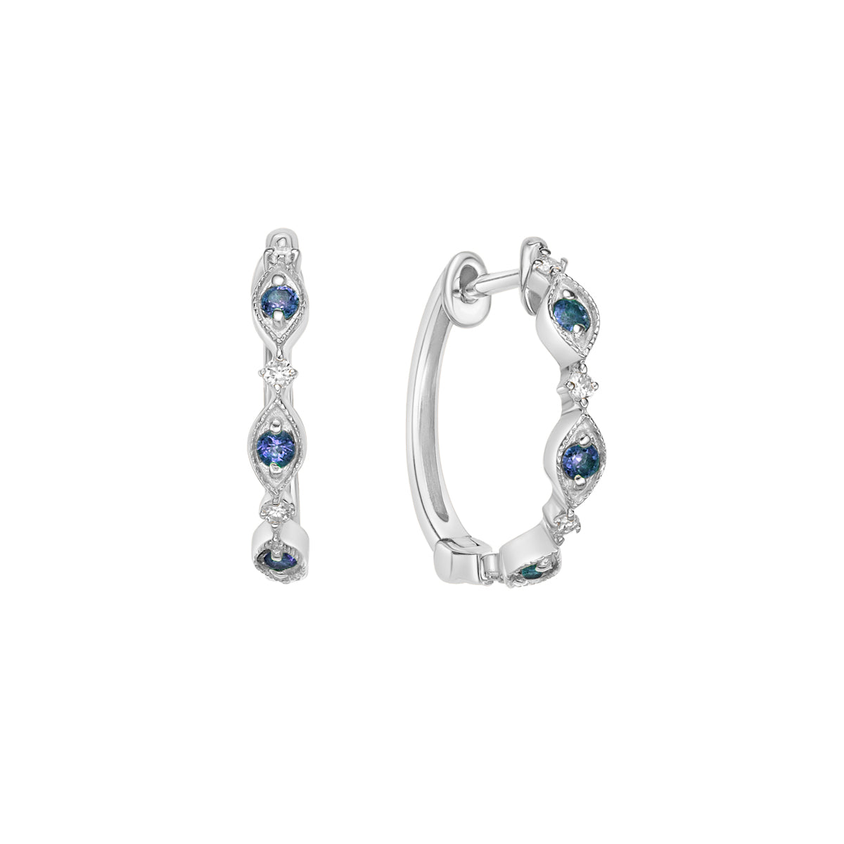 10K White Gold Classic Sapphire & Diamond Hoop Earrings 0.04 cttw