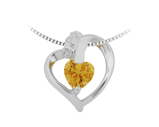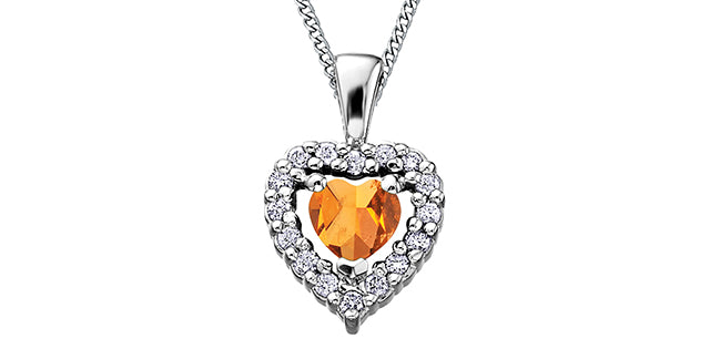 Collar con corazón de diamantes y citrinos en oro blanco de 10 quilates, 18"