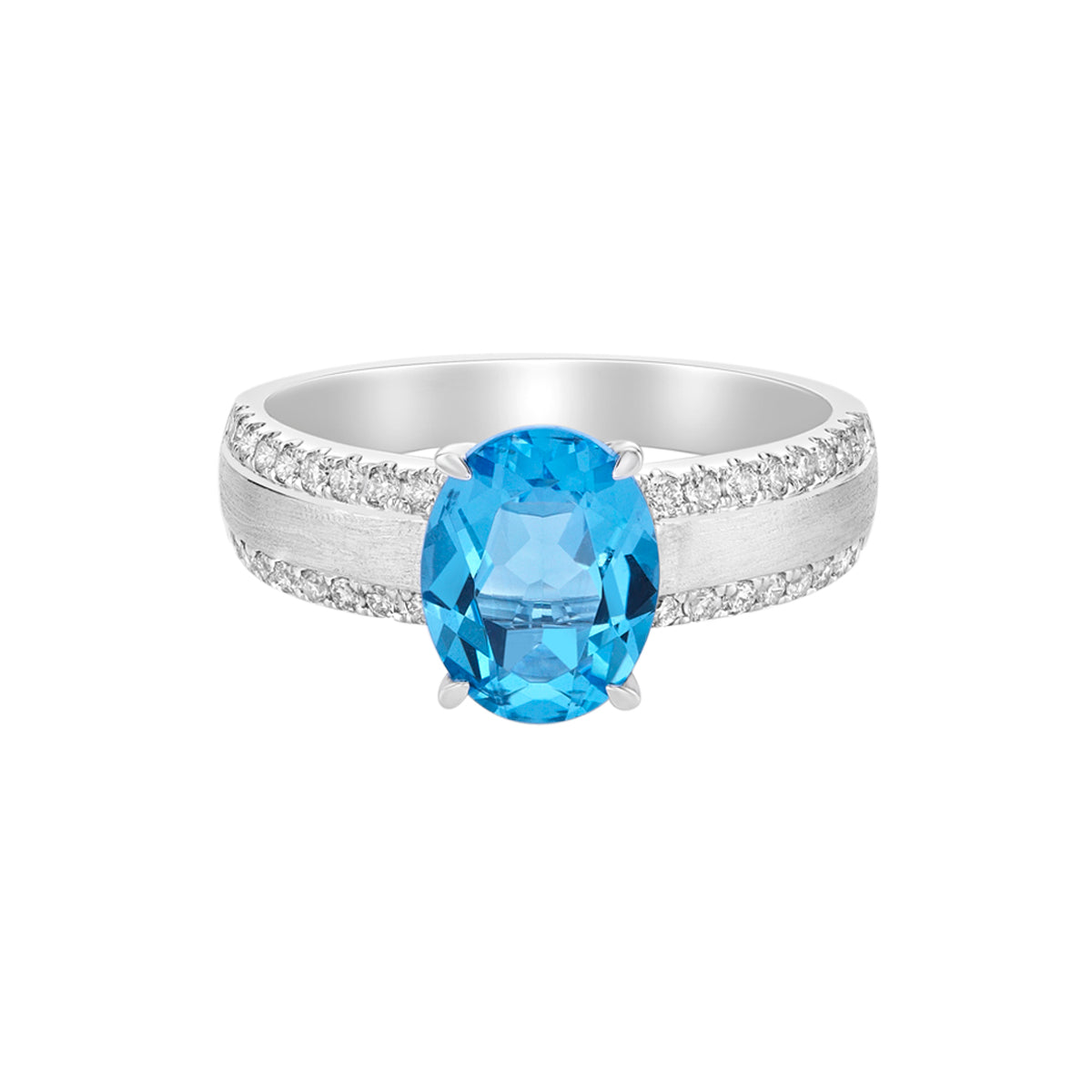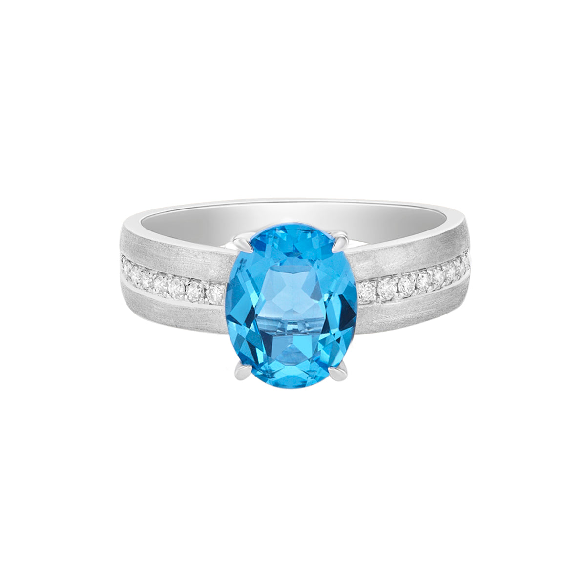 10K White Gold Brushed Swiss Blue Topaz & Diamond ring