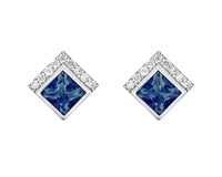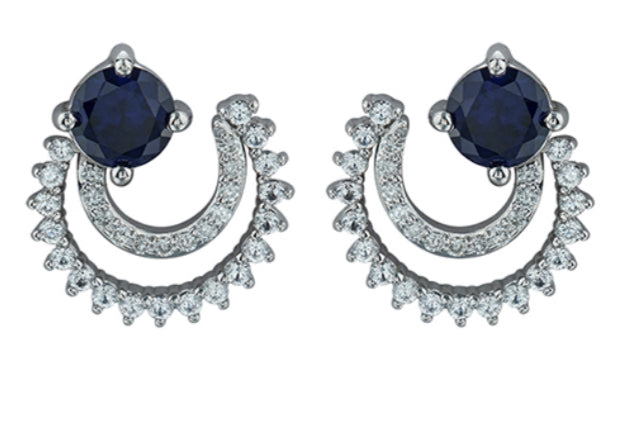 Aretes de diamantes y zafiros blancos creados, zafiro azul creado en oro blanco de 10 quilates