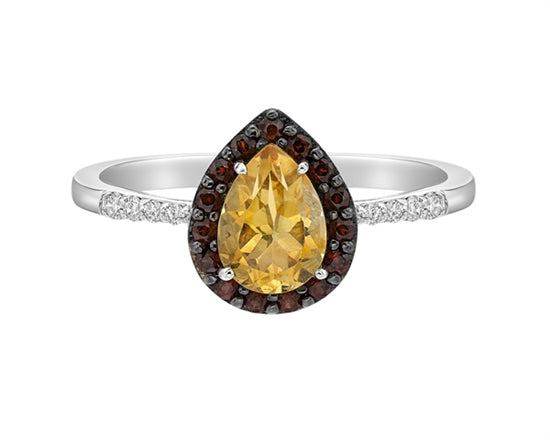 Anillo de oro blanco de 10 quilates con citrino, granate y diamantes, talla 7