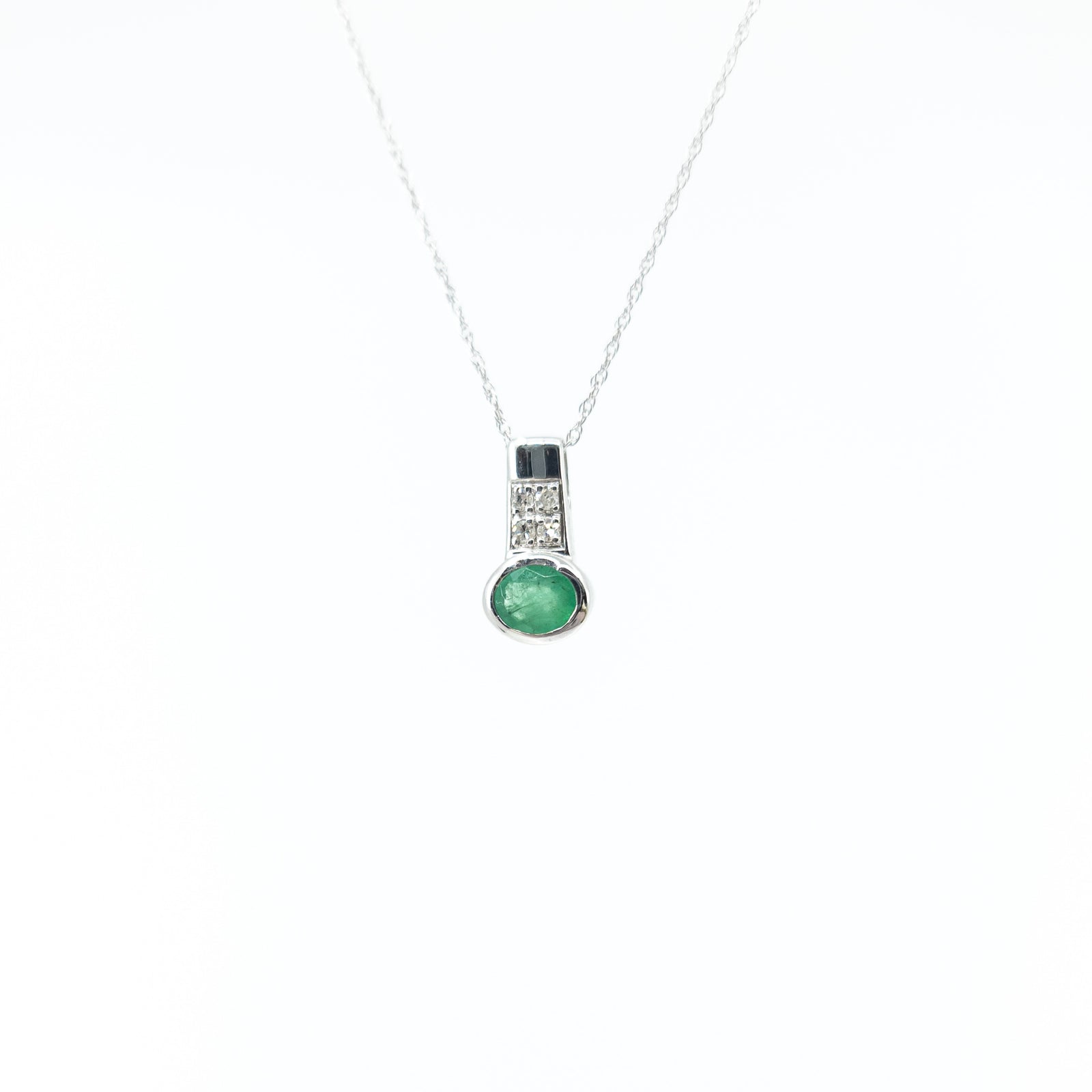 Colgante de diamantes y esmeralda genuina de oro blanco de 10 quilates, 18 "