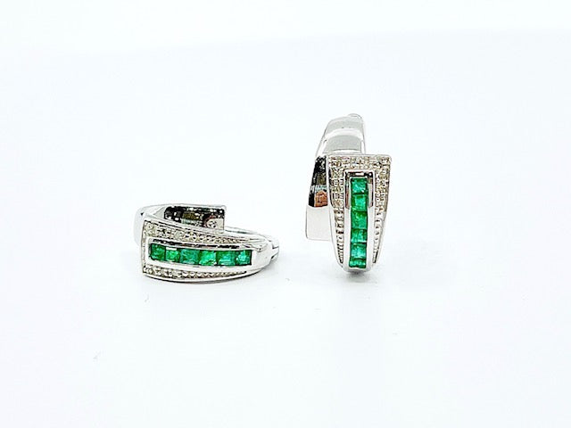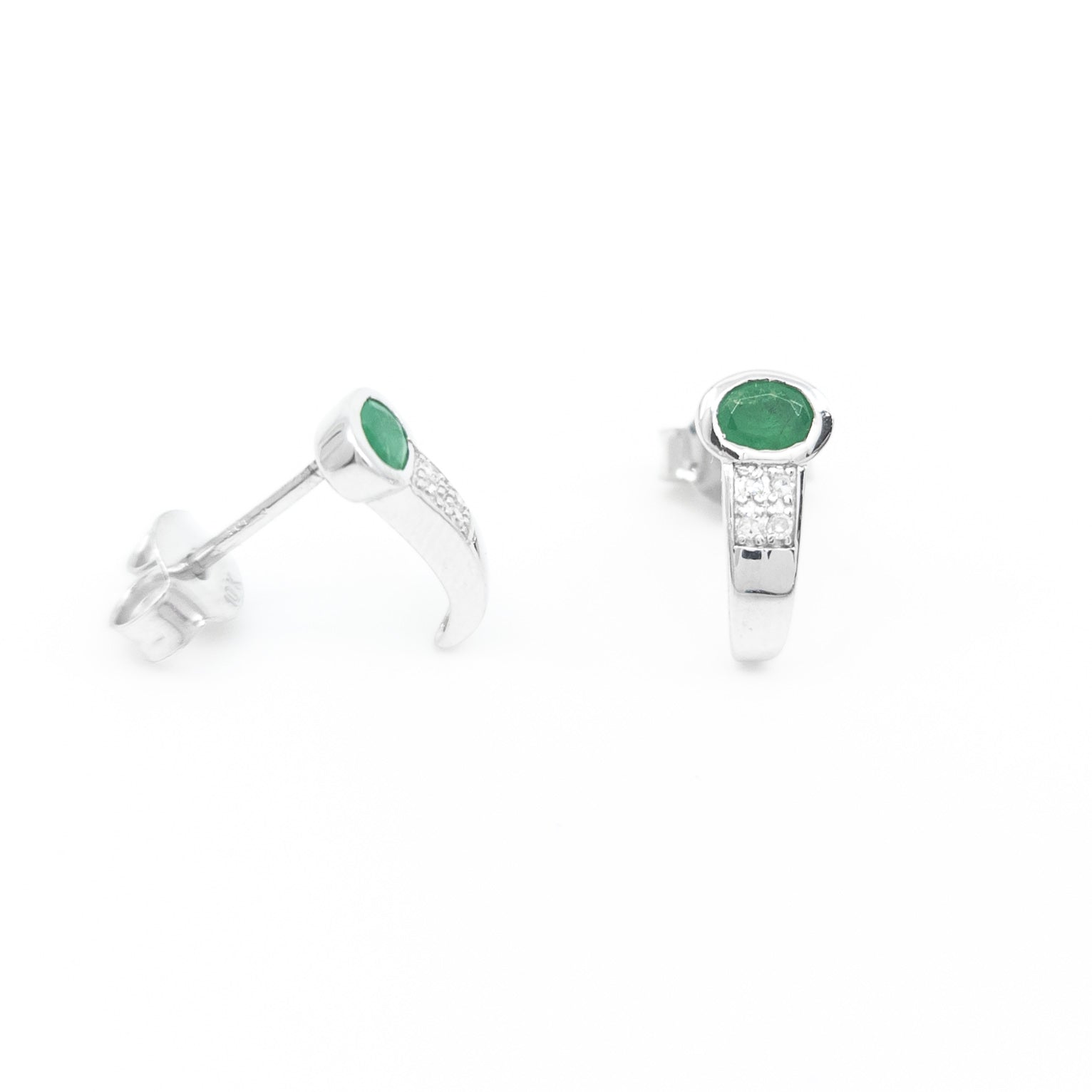 Pendientes de diamantes y esmeraldas genuinas de oro blanco de 10 quilates
