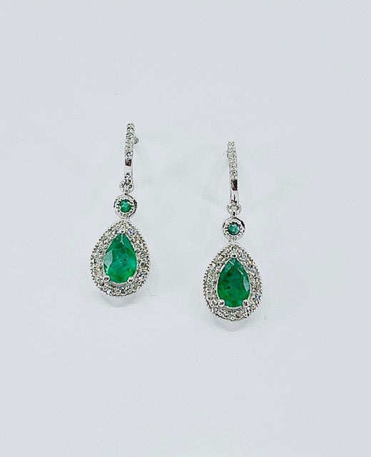 Pendiente de diamantes y esmeralda genuina de oro blanco de 10 quilates $408.00 $510.00 $408.00 $510.00