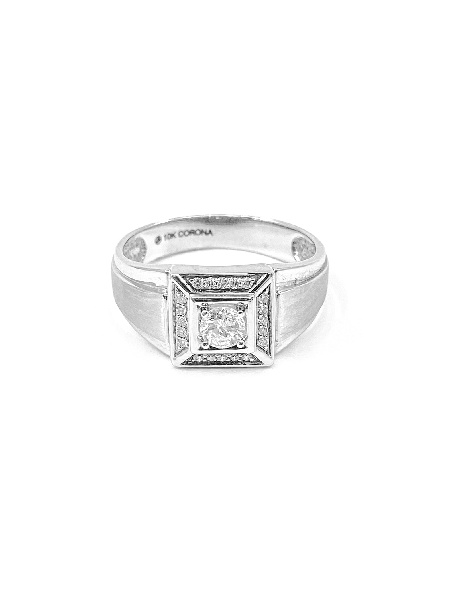 Anillo de diamantes canadienses de 0,30 quilates para caballero en oro blanco de 10 quilates, talla 10