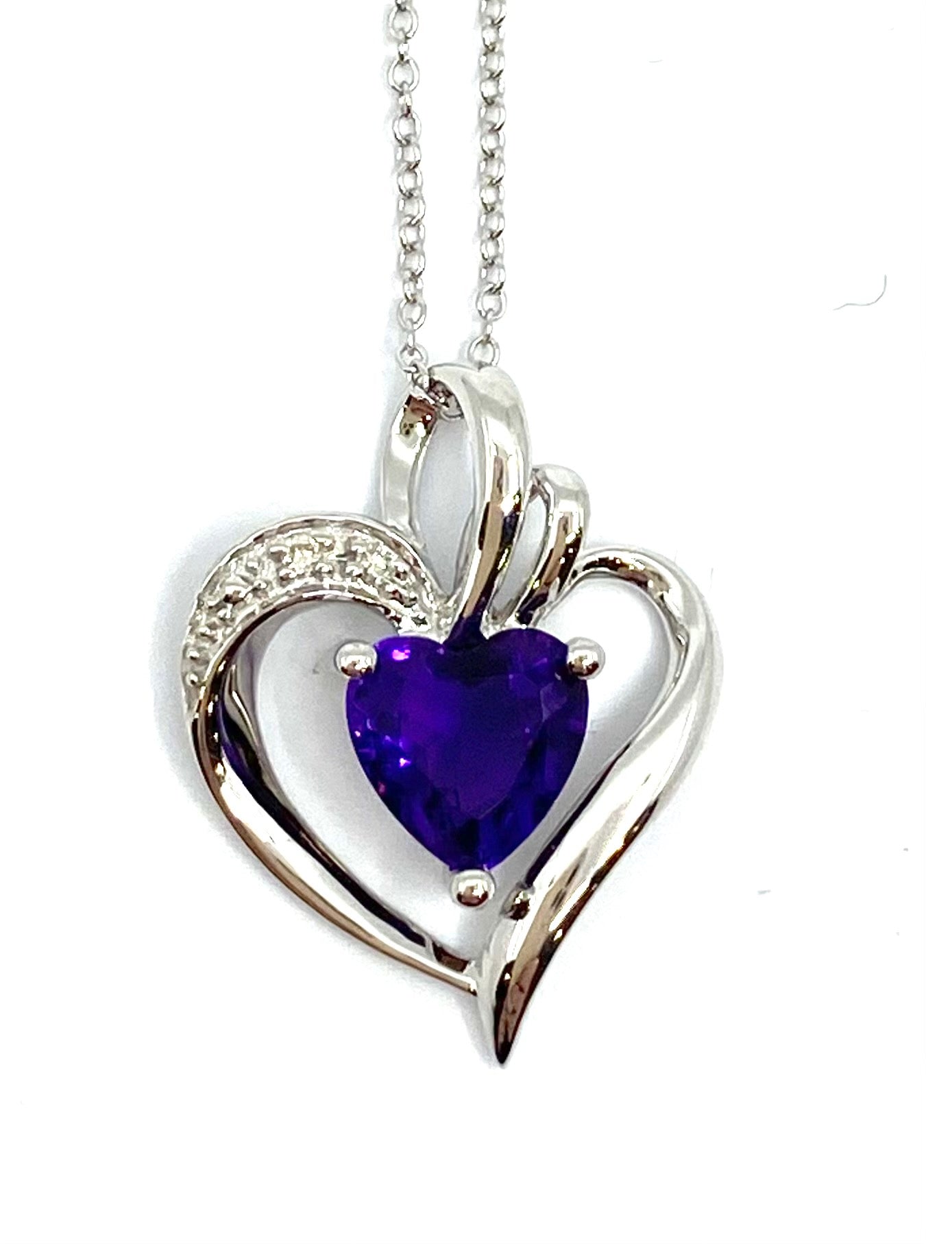 Anillo de oro blanco de 10 quilates con amatista y diamantes de talla corazón, talla 7 $560.00 $809.00 $560.00 $809.00