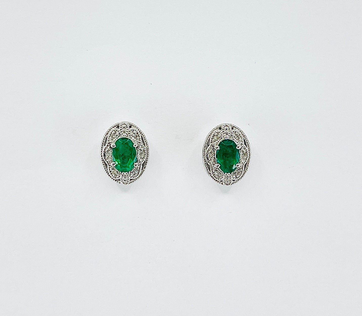 Pendientes de diamantes y esmeraldas genuinas de oro blanco de 10 quilates $648.00 $810.00 $648.00 $810.00