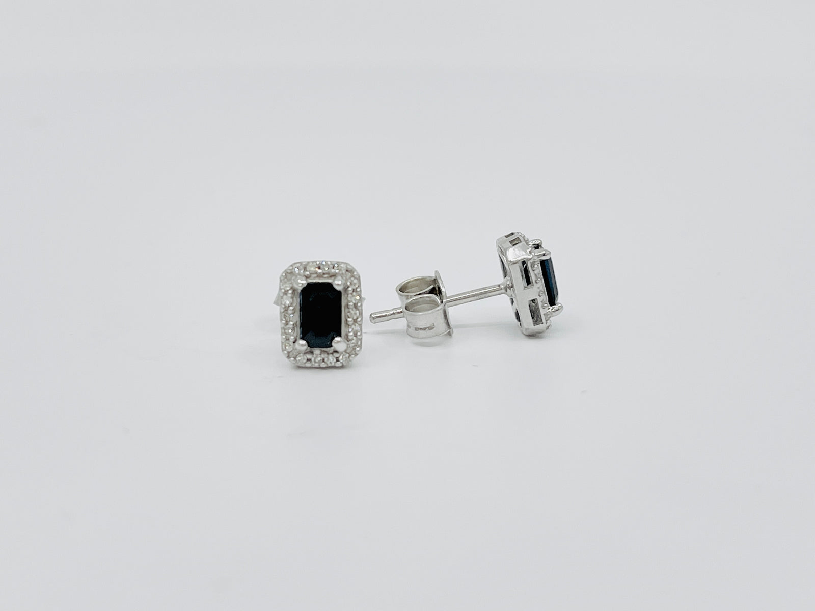 Pendientes de diamantes y zafiros auténticos en oro blanco de 10 quilates Vendido Vendido