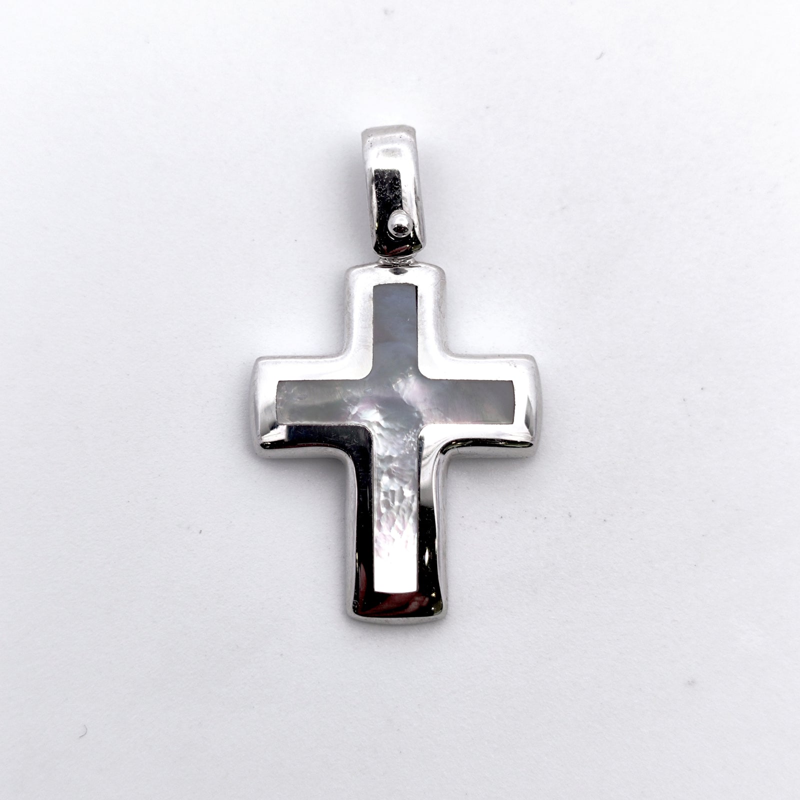 10K White Gold Mother of Pearl Cross 25MMX15MM