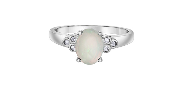 10K White Gold Opal and Diamond Ring