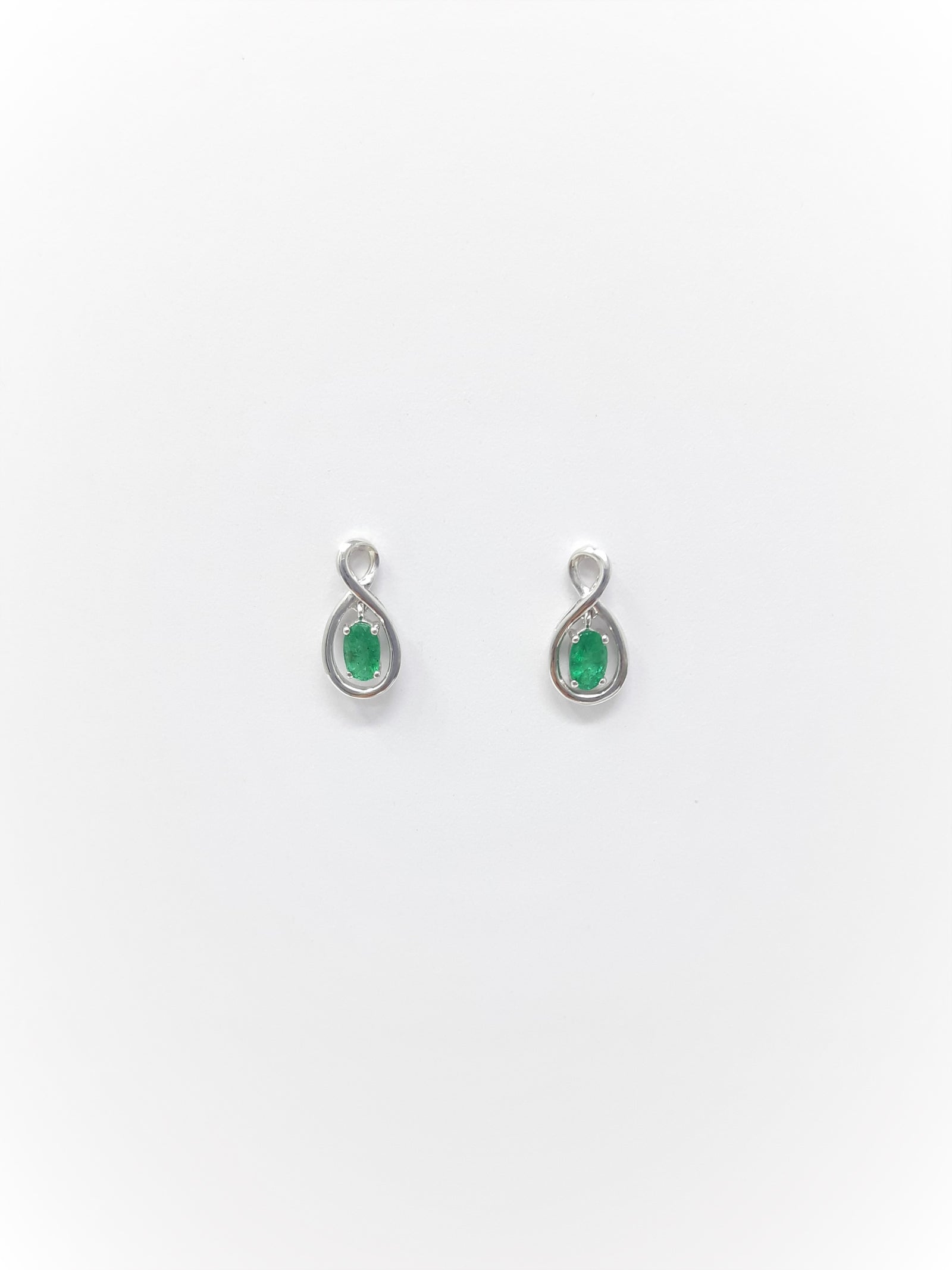 Aretes con esmeralda de talla ovalada en oro blanco de 10 quilates